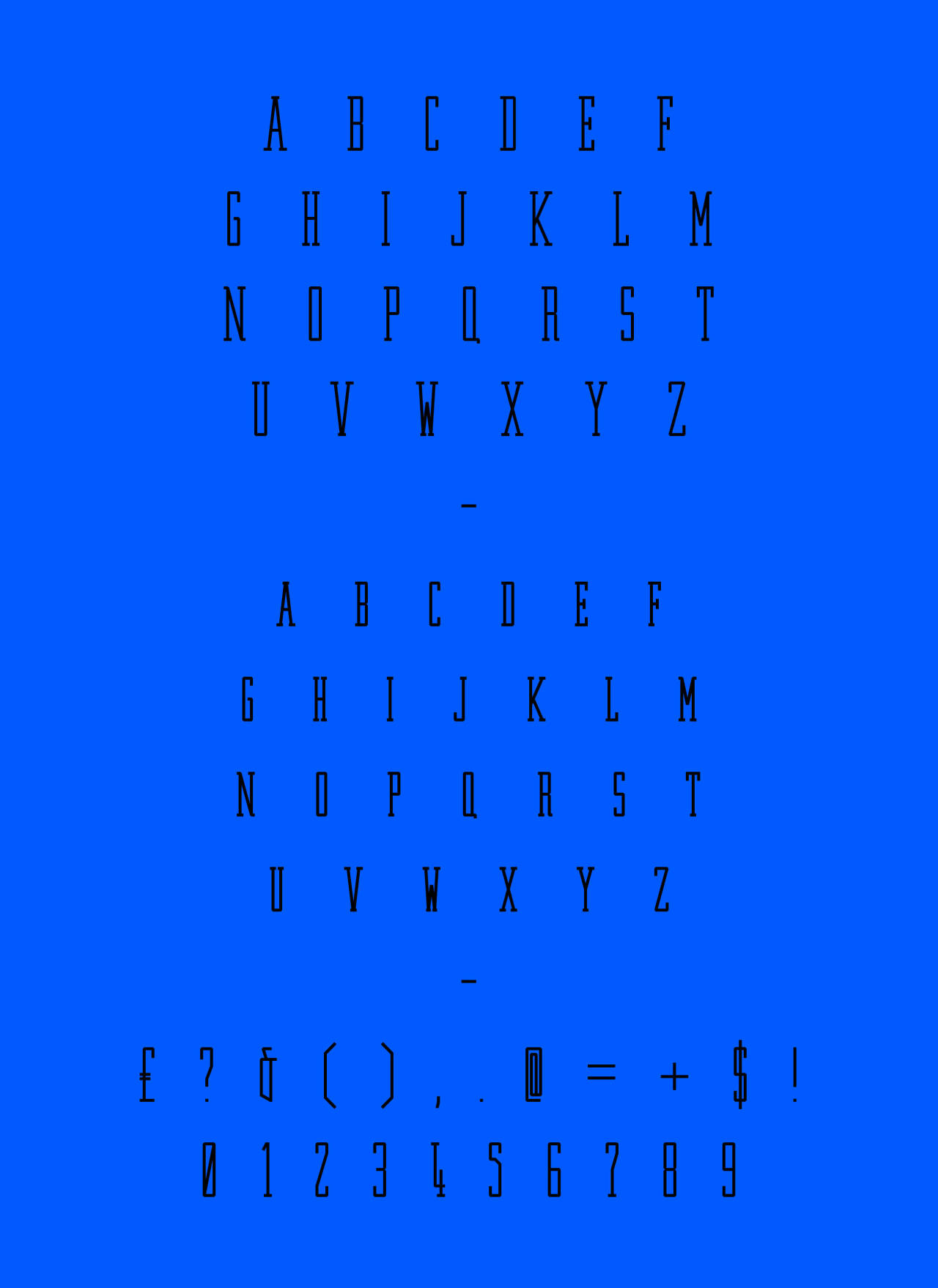 A new free, narrow slab-serif typeface, consisting of Caps, Small Caps, Numerals and Punctuation. With every character fitting inside a rectangular frame, the spaces between each letter are very definite and consistent. (via Neal Fletcher – neal@nealfletcher.co.uk)