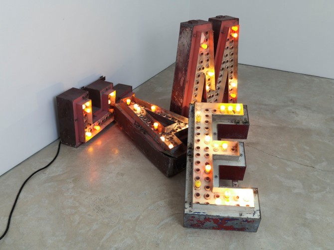 Fame, 2010Metal, paint, vintage light bulbs (via Jack Pierson – Artist Biography & Works – Xavier Hufkens)