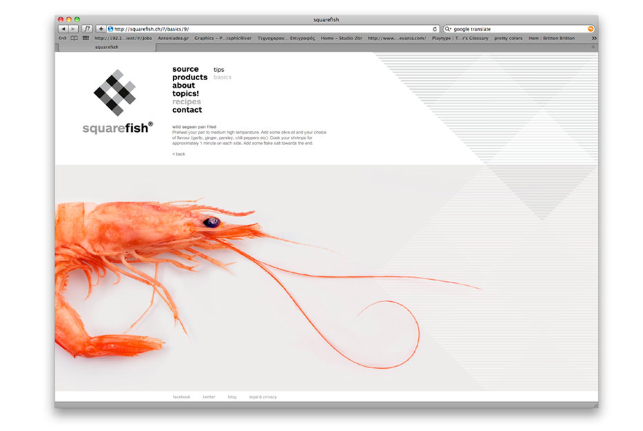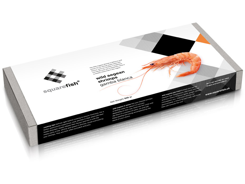 ARS Maquette features in this award-winning identity and packaging design by Mousegraphics for the Swiss based sea-food products label SquareFish. Clever sense of underwater movement using this op art effect.