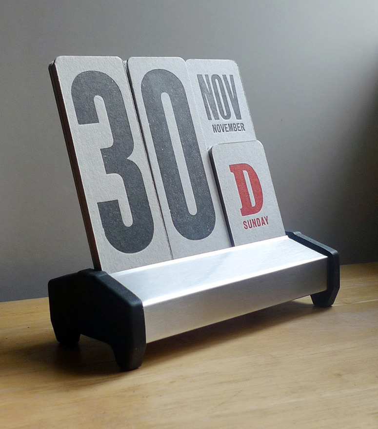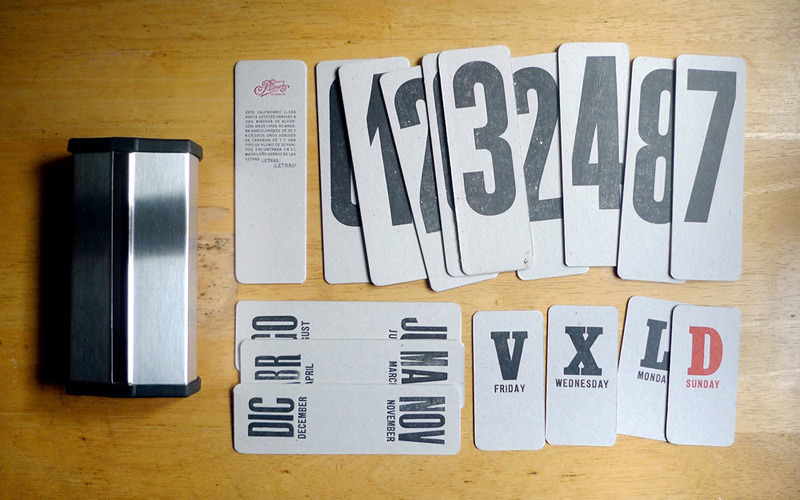 myfonts: arrangealign: Quite a unique calendar, don’t you think? Letterpress Perpetual Calendar by Familia Plómez Thinking a solid wood base would have fit this better, but digging the printed pieces. Tags:calendartype