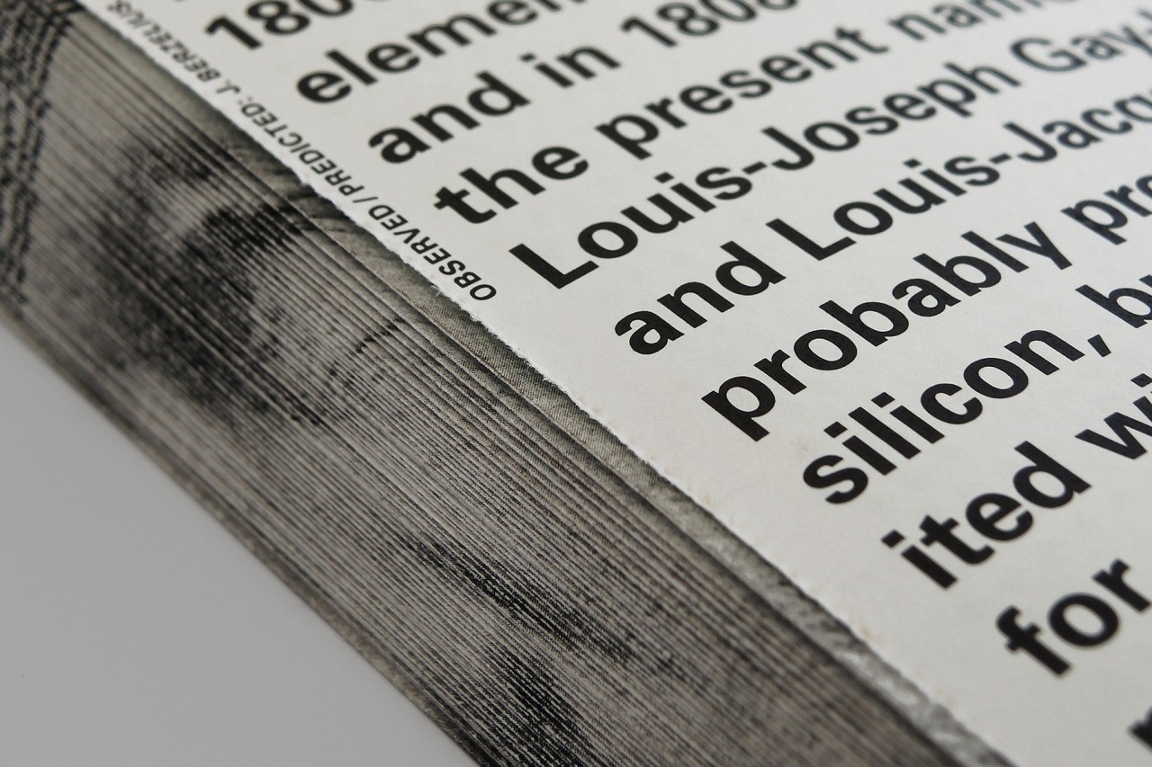 “Rediscovering” is a book project based on the visual interpretation of the chemical periodic system of elements and the periodic law. The idea behind this project is to visually transform the knowledge from one system to another. All elements are placed in the chronological order in which they were discovered, inviting readers to rediscover them all. Different colours mark the specific element categories and feature silkscreen printing, except for black. The book cover, together with the printed end pages, achieves a unified sense of form.